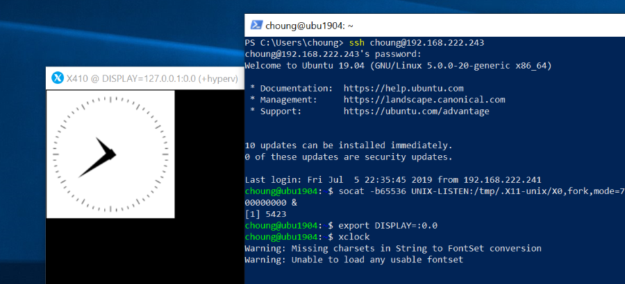 - Ubuntu 19.04 installed via 'Hyper-V Quick Create'