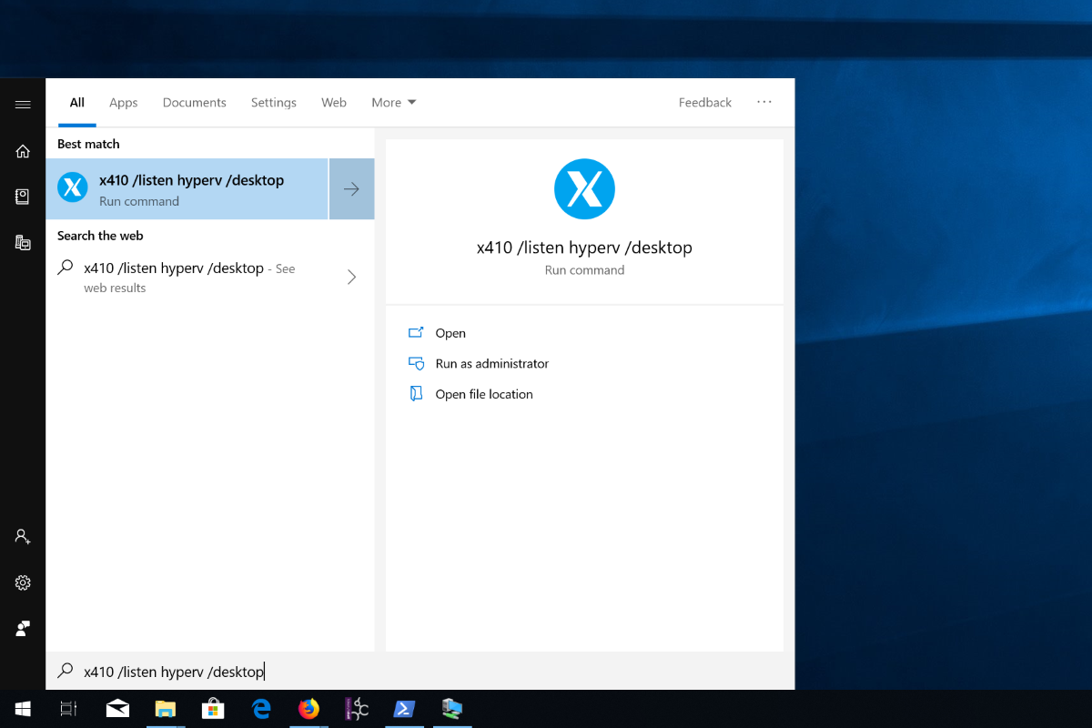 Starting from version 2.6.0, X410 can be used with Hyper-V Linux virtual machines for opening their GUI desktop via VSOCK (virtual socket).